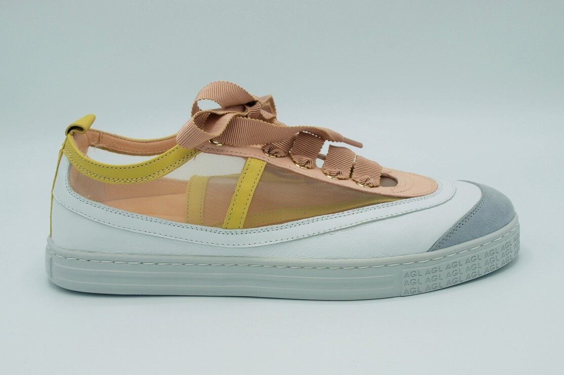Nauwkeurig vakmanschap, onderscheidend materiaal en speelse belijning maken deze Italiaanse luxe sneaker tot een absoluut kunstwerk! De mix van wit glad leer, lichtgrijs suède op de neus en luchtig gaas vormt het tot een geheel ontwerp waar AGL bekend om is; Individueel, creatief, stijlvol en modieus.Merk: AGLType Schoen: SneakerKleur: Multi ColorMateriaal Buitenkant: LeerMateriaal Binnenkant: LeerMateriaal Zool: RubberWijdtemaat: NormaalUitneembaar Voetbed: Nee
