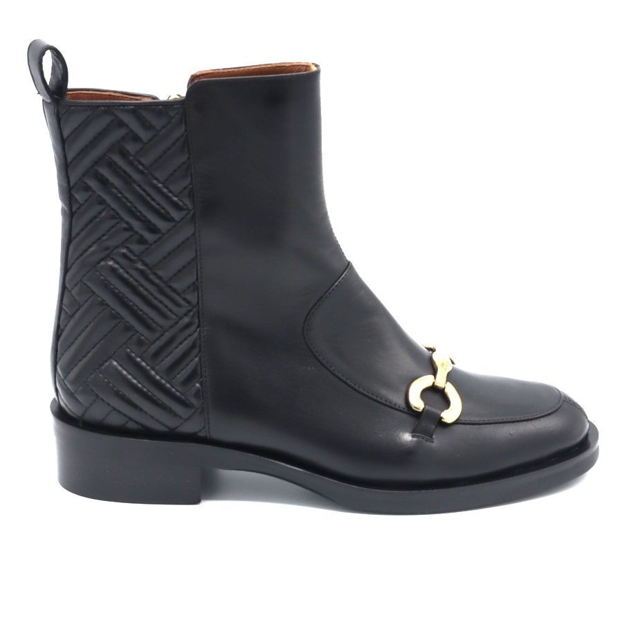 Geïnspireerd door vrouwen voor vrouwen, alles bij Evaluna ademt stijl en kwaliteit uit, of het nu om pumps, enkellaarsjes of een ander model schoenen gaat! De prachtige schoenen van Italiaanse makelij zijn echte pareltjes en een ware toevoeging aan de schoenenkast van elegante dames. Dit zwarte enkellaarsje straalt de het modesfeer van Milaan uit, mooi zacht vitello leer in Chanel stijl met goudkleurige applicatie voorop de wreef. Merk: EvalunaType Schoen: EnkellaarsKleur: ZwartMateriaal Buitenkant: LeerMateriaal Binnenkant: Leer Materiaal Zool: RubberWijdtemaat: NormaalUitneembaar voetbed: NeeMaatvoering: 1/2 maten
