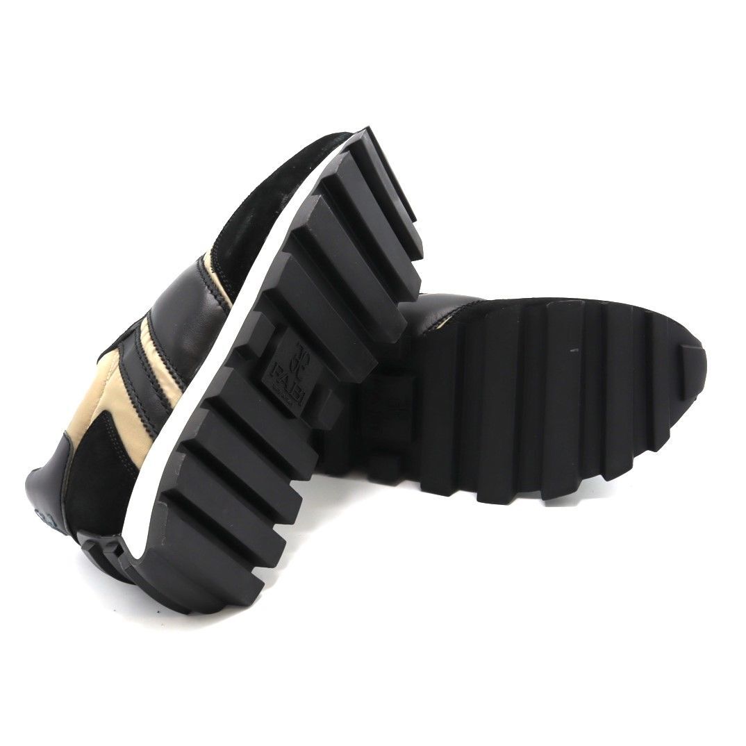 Fabi is een Italiaans schoenenmerk dat bekend staat om zijn stijlvolle en hoogwaardige schoenen. De sneakers van Fabi zijn vaak onderscheidend door hun unieke ontwerpen, luxe materialen en vakmanschap. Met aandacht voor detail en oog voor mode, weet Fabi een perfecte balans te vinden tussen comfort en stijl. De sneakers van Fabi kunnen zowel casual als chic worden gedragen en zijn een perfecte keuze voor wie op zoek is naar een eigentijdse en verfijnde uitstraling. Met een paar Fabi sneakers voeg je zeker een vleugje Italiaanse flair toe aan je outfit.Merk: FabiType Schoen: SneakerKleur: ZwartMateriaal Buitenkant:Leer Suede StofMateriaal Binnenkant: LeerMateriaal Zool: RubberWijdtemaat: NormaalUitneembaar voetbed: JaMaatvoering: 1/2 Maten