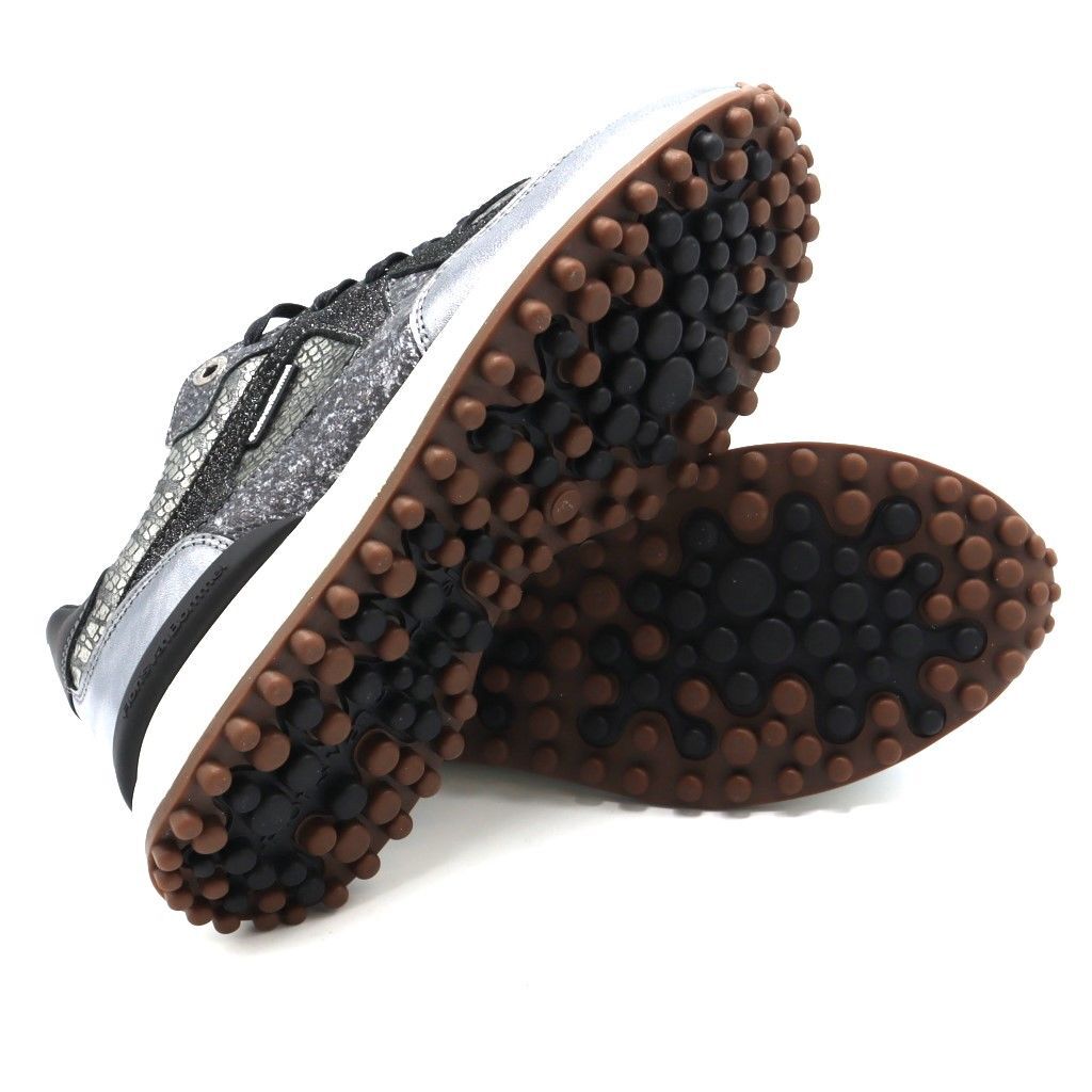 De Noppi, de Blokki, de Grommi, Floris maakt naam met zijn opvallende sneakers. De handtekening die Floris heeft gegeven aan zijn herenschoenen is nu ook van pas in de collectie damessneakers. Zowel de namen als de ontwerpen zijn onderscheidend en herkenbaar en ze lopen ook nog eens fantastisch. Try them and love them.Merk:Floris van BommelType Schoen: SneakerKleur: ZilverMateriaal Buitenkant: Metallic LeerMateriaal Binnenkant: LeerMateriaal Zool: RubberWijdtemaat: NormaalUitneembaar voetbed: JaMaatvoering: 1/2 Maten