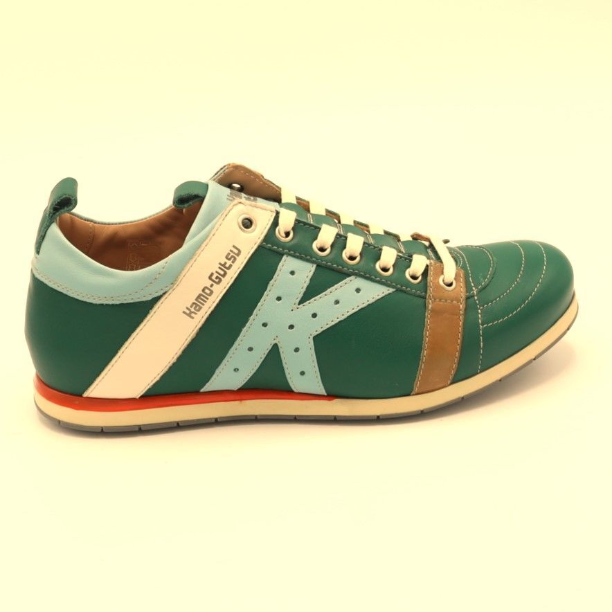 Eigenzinnige sneaker van Kamo-Gutsu. Designed in België, geproduceerd in ItaliëGeïnspireerd door het Japanse balspel Kemari uit de 7e eeuw, een voorloper van het hedendaagse voetbal. Altijd onderscheidend in zijn kleuren combinaties en materialen en al jaren lang een favoriet in onze collectie.Merk: Kamo-GutsuType Schoen: SneakerKleur: GroenMateriaal Buitenkant: LeerMateriaal Binnenkant: LeerMateriaal Zool: RubberWijdtemaat: NormaalUitneembaar voetbed: JaMaatvoering: Hele Maten