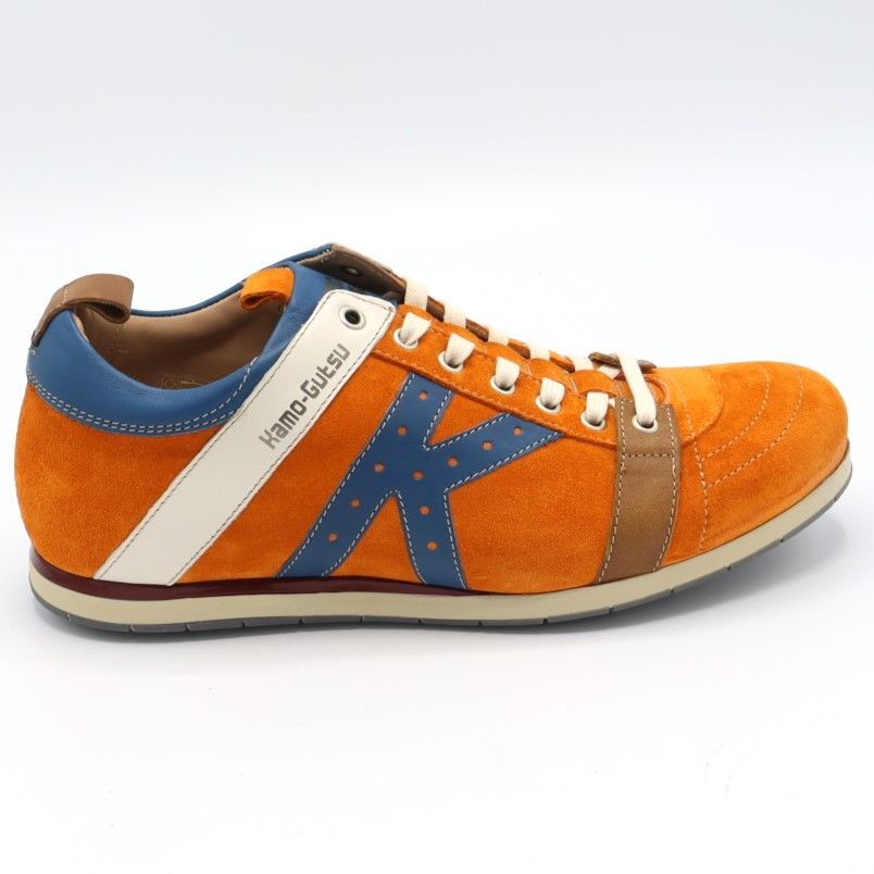 Eigenzinnige sneaker van Kamo-Gutsu. Designed in België, geproduceerd in ItaliëGeïnspireerd door het Japanse balspel Kemari uit de 7e eeuw, een voorloper van het hedendaagse voetbal. Altijd onderscheidend in zijn kleuren combinaties en materialen en al jaren lang een favoriet in onze collectie.Merk: Kamo-GutsuType Schoen: SneakerKleur: OranjeMateriaal Buitenkant: SuedeMateriaal Binnenkant: LeerMateriaal Zool: RubberWijdtemaat: NormaalUitneembaar voetbed: JaMaatvoering: Hele Maten
