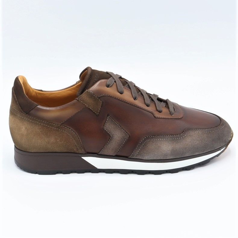 Het Spaanse schoenenmerk Magnanni produceert prachtige herenschoenen en is een toonaangevend merk op het gebied van dressed shoes. Kwalitatief behoort Magnanni tot de beste schoenfabrikanten van Spanje. Er wordt voornamelijk gebruik gemaakt van fijn kalfsleer. Ook de kleuring en afwerking van zijn een klasse apart waardoor Magnanni zich duidelijk onderscheidt van de concurrentie.Merk: MagnanniType Schoen: SneakerKleur: Taupe Suede Bruin leerMateriaal Buitenkant: LeerMateriaal Binnenkant: Leer Materiaal Zool: Rubber zoolWijdtemaat: NormaalUitneembaar Voetbed: Ja