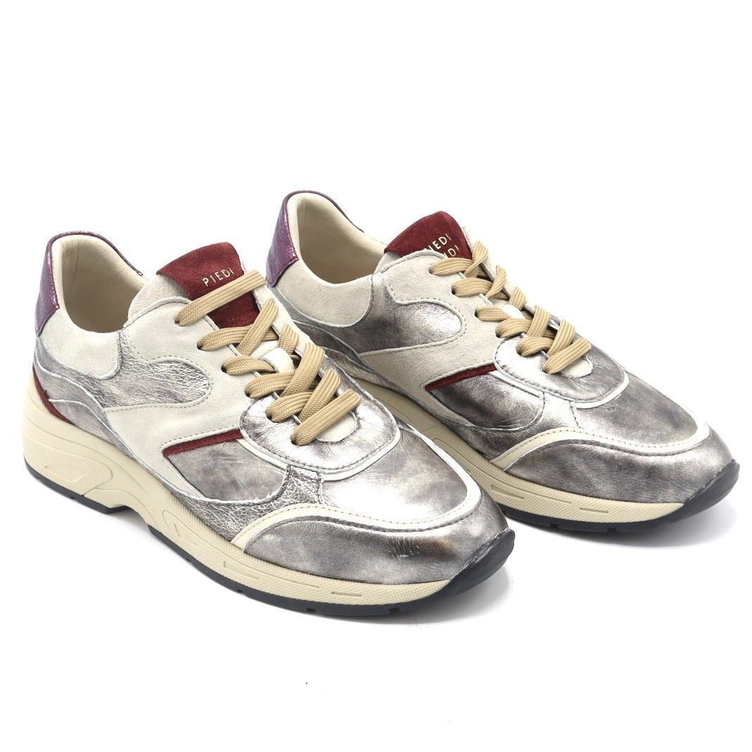 Het designteam van Piedi Nudi combineert fashion met comfort. Iedere keer weer weten zij een modieuze collectie te ontwerpen. Altijd met het unieke Piedi Nudi handschrift, stijlvol en stoer!Ook de sneaker collectie valt altijd op door hun creatieve design met opvallende kleuren en materialen.Merk: Piedi NudiType Schoen: SneakerKleur: Oud Zilver TaupeMateriaal Buitenkant: Metallic SuedeMateriaal Binnenkant: Leer Materiaal Zool: RubberWijdtemaat: G+Uitneembaar voetbed: JaMaatvoering: Hele Maten