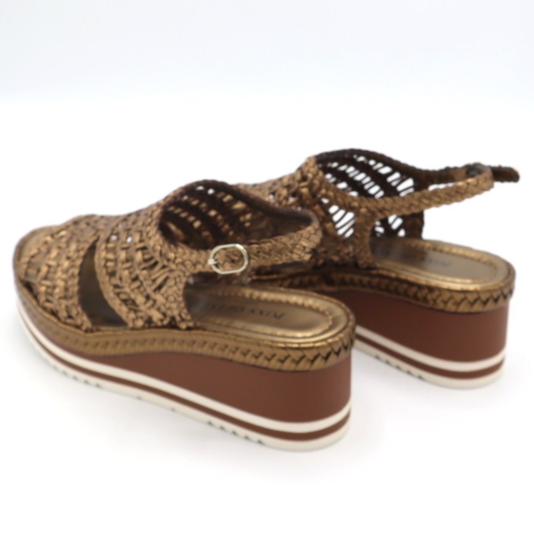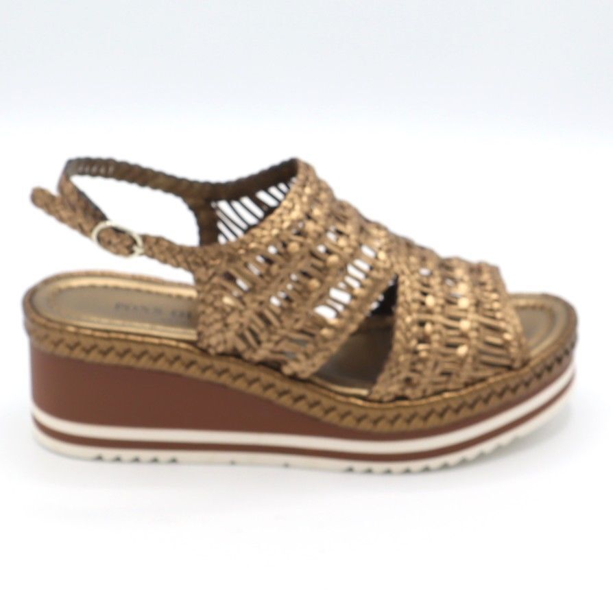 Sinds de oprichting in van het merk Pons Quintana in 1953 heeft dit Spaanse schoenenmerk kwaliteit, comfort en design van de materialen als speerpunt van de collectie gemaakt. Pons Quintana staat bekend om haar schoenen met vlechtwerk die zich helemaal aanpassen aan de vorm van uw voet. Hierdoor zijn de schoenen erg comfortabel. De modellen zijn afgewerkt met eigentijdse details en kleuren.Merk: Pons QuitanaType Schoen: SandaalKleur: Brons MetallicMateriaal Buitenkant: Vlecht LeerMateriaal Binnenkant: LeerMateriaal Zool: RubberWijdtemaat: NormaalUitneembaar voetbed: NeeMaatvoering: Halve Maten